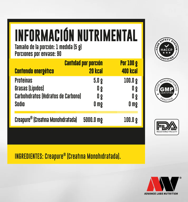 100% Creatina Monohidratada Pura: Formulada con Creapure®, la marca líder mundial de creatina, garantizando la más alta calidad, pureza y seguridad en cada dosis. Olvídate de impurezas y disfruta de resultados reales.