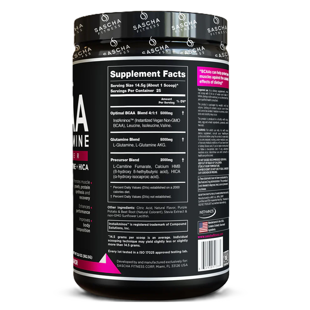 Sascha Fitness BCAA’s es lo último en suplementos para el entrenamiento. Esta exclusiva y potente mezcla de aminoácidos mejora el rendimiento y la recuperación como ninguna otra. Además, te proporcionará energía limpia y duradera para que superes incluso los entrenamientos más exigentes, sin estimulantes, nerviosismo ni efectos secundarios molestos. Puede ayudarte a mejorar tu composición corporal, masa muscular y también favorece la pérdida de grasa.