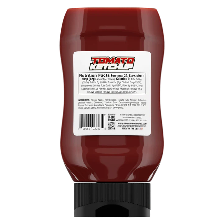 El kétchup con sabor puro, sin aditivos. El kétchup de tomate Dragon Dips ofrece un sabor a tomate familiar en una fórmula sin azúcar, sin sodio y sin calorías, diseñada para las comidas diarias. Elaborado con pulpa de tomate, vinagre y un sistema de edulcorantes equilibrado, este condimento listo para usar mantiene la experiencia clásica del kétchup adaptándose a las preferencias de un estilo de vida saludable.