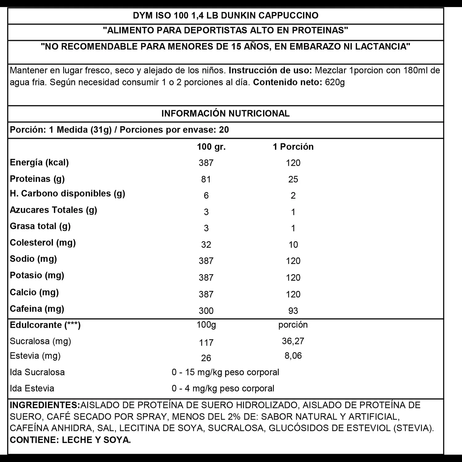 | Sabor | Dunkin Cappuccino, Dunkin Glazed Donut, Dunkin Mocha Latte |