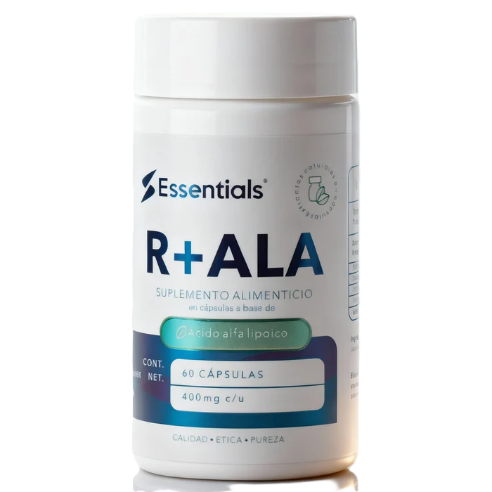 Suplemento de Ácido Alfa Lipoico (forma R+, 400 mg por cápsula), un antioxidante potente que participa en reacciones metabólicas, apoya la neutralización de radicales libres y favorece el mantenimiento de funciones celulares saludables.