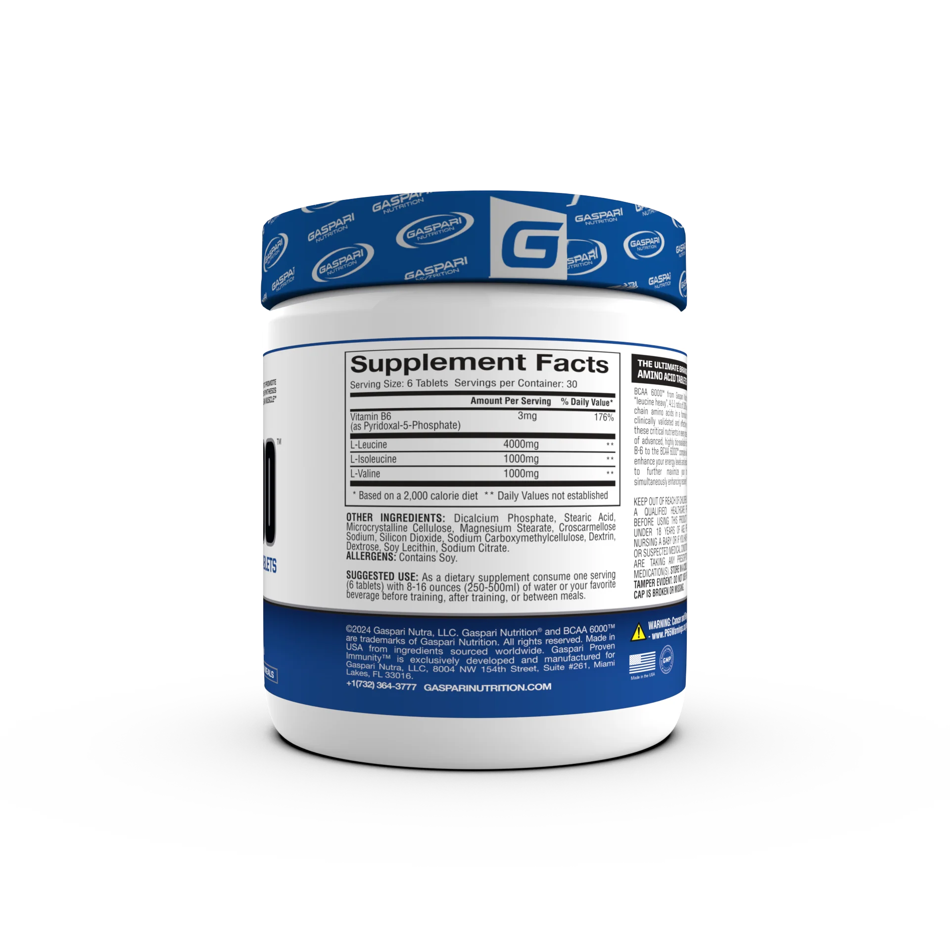 Gaspari BCAA 6000 es un suplemento de aminoácidos de cadena ramificada de alto rendimiento diseñado para favorecer la recuperación muscular , mejorar la resistencia y optimizar el rendimiento deportivo . Con una proporción 6:1:1 de L-leucina, L-isoleucina y L-valina, esta fórmula proporciona una síntesis óptima de proteínas musculares, reduciendo la fatiga y promoviendo el crecimiento de masa muscular magra.