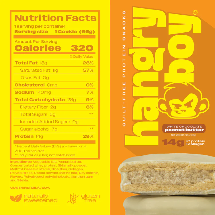 Cada caja contiene (12) galletas selladas individualmente. Más proteína. Menos azúcar.