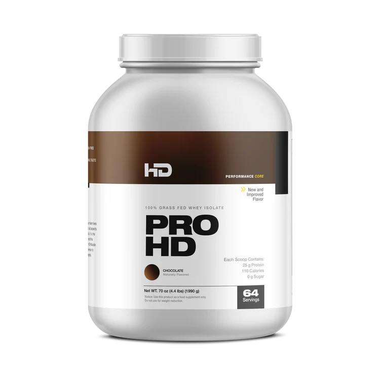 ProHD, nuestra proteína de suero aislada 100 % de animales alimentados con pasto, está cuidadosamente elaborada para ser la proteína en polvo más pura, limpia y con mejor sabor del mercado. Libre de rellenos, mezclas e ingredientes que aumentan la cantidad de aminoácidos, ProHD establece el estándar para suplementos proteicos premium.
