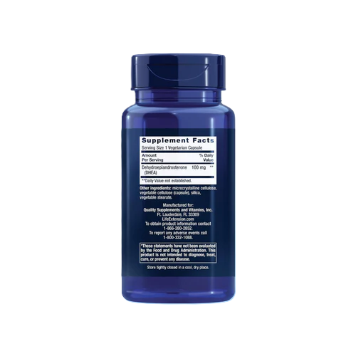 DHEA 100 mg de Life Extension es la presentación de mayor potencia de DHEA disponible, destinada a adultos con niveles significativamente bajos confirmados por laboratorio que requieren una dosis terapéutica bajo supervisión médica. La DHEA es una hormona precursora producida en las glándulas suprarrenales que declina con la edad.