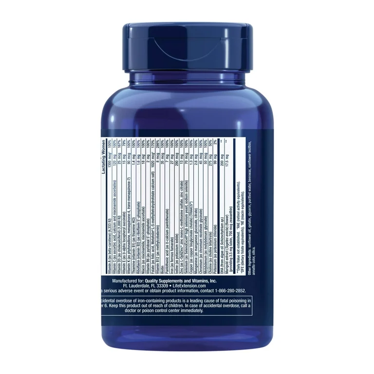 Suplemento Life Extension Prenatal Advantage son vitaminas prenatales integrales para mujeres embarazadas, multivitamínico completo para un cerebro sano con DHA, sin OGM ni gluten, 120 cápsulas blandas.