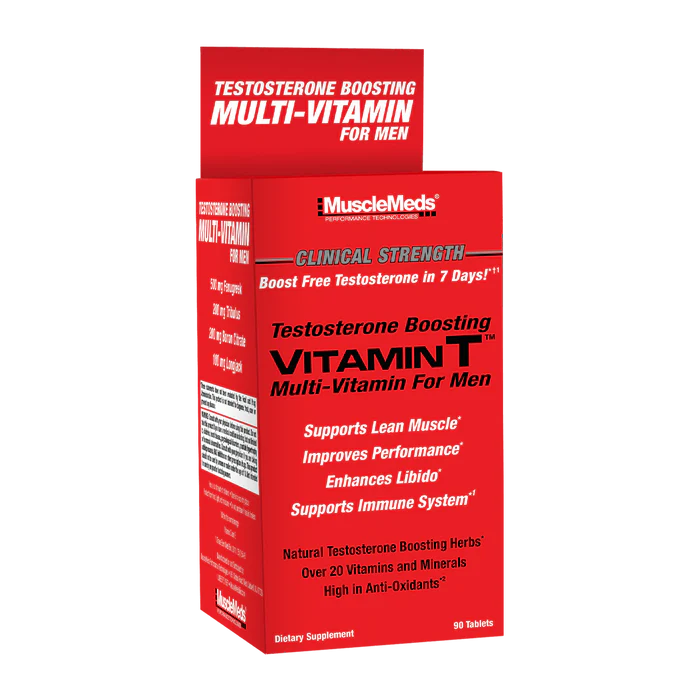 VITAMIN T es un soporte premium de testosterona y un multivitamínico completo especialmente formulado para hombres. VITAMIN T proporciona más de 20 vitaminas y minerales y contiene potentes antioxidantes como la vitamina C y E para apoyar al sistema inmunológico y en la óptima salud masculina. Si deseas verte, sentirte y rendir al máximo, VITAMIN T es la multivitamina para ti.