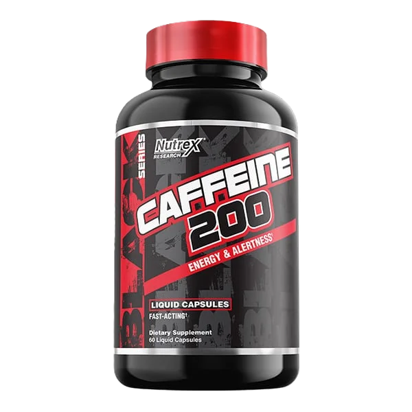 Caffeine 200 de Nutrex Research es un suplemento en cápsulas líquidas que proporciona 200 mg de cafeína anhidra de rápida acción, una forma de cafeína que se absorbe rápidamente.