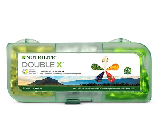 Ya sea que te interese la nutrición deportiva, el control de peso o una buena nutrición para mantener la salud en general, el suplemento Double X™ de Nutrilite™ está repleto de vitaminas, minerales y fitonutrientes para ayudar a reforzar la salud del corazón, cerebro, ojos, piel, huesos y sistema inmunológico.* Contiene ingredientes naturales de plantas de todos los colores del espectro de fitonutrientes: