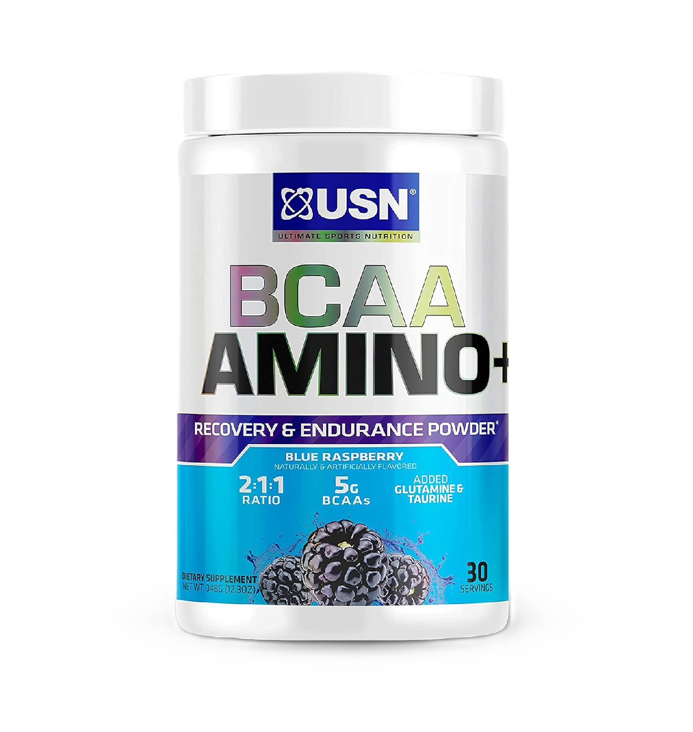 BCAA Amino+ de USN promueve la resistencia muscular, la fuerza y la recuperación. Cada una de las 30 porciones no contiene azúcar y proporciona una matriz premium de BCAA’s y Aminos.